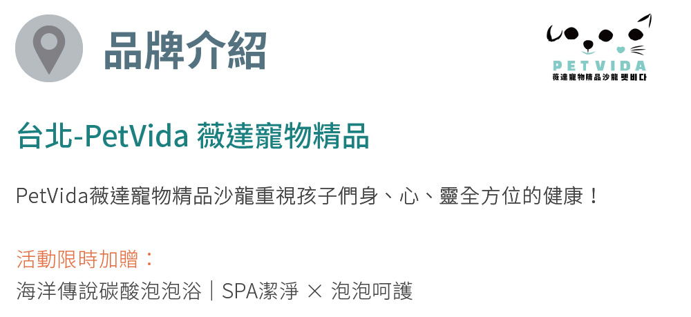 活動!台北【PetVida 薇達寵物精品】1000元商品&課程通用券加贈海洋傳說碳酸泡泡浴(MO)