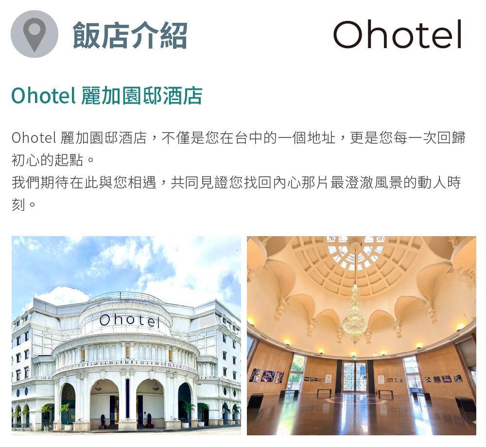 台中【Ohotel麗加園邸酒店】平日豪華四人房一泊一食住宿券(MO)
