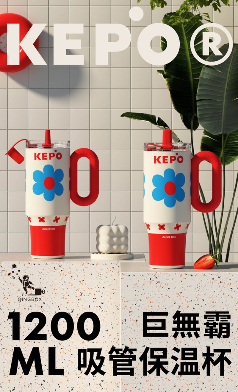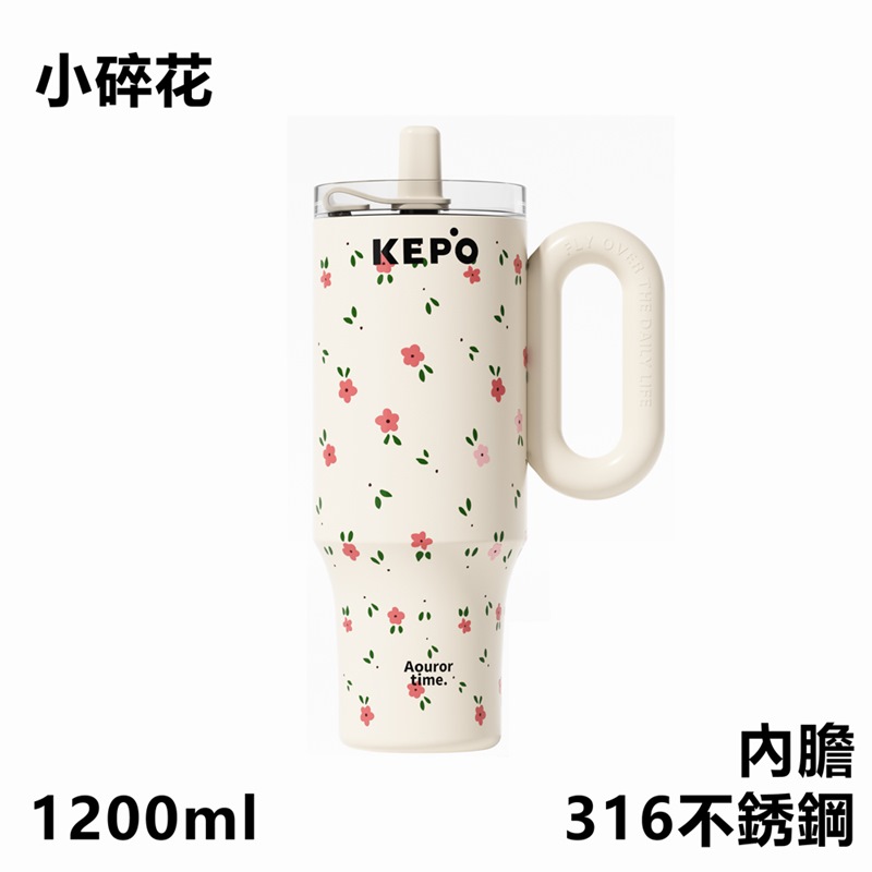 KEPO LQ 1200ml KC007巨無霸吸管花園冰霸杯內膽陶瓷塗層 小碎花