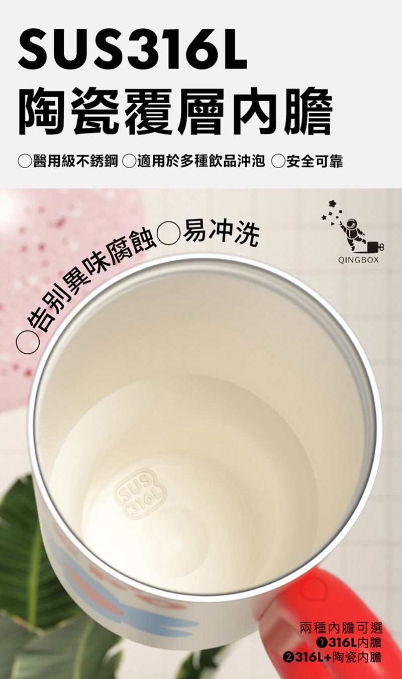 內膽材質:316不銹鋼內膽(款),316不銹鋼陶瓷塗層內膽(款)