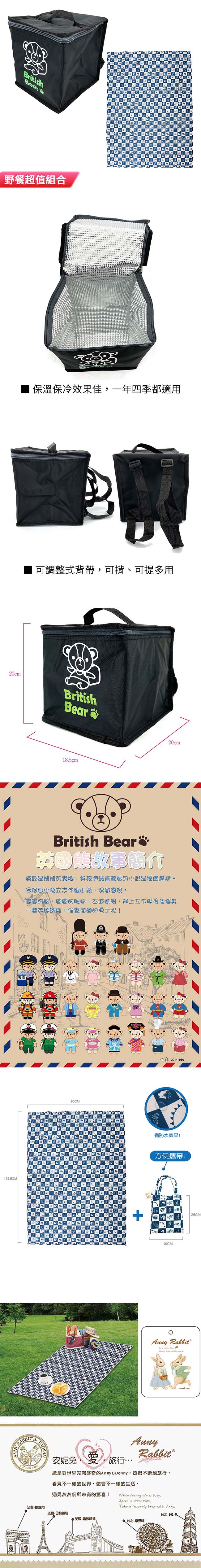 英國熊 保溫保冷大容量雙用箱包 Y-2524+安妮兔 防水野餐墊(附提袋) Y-B017