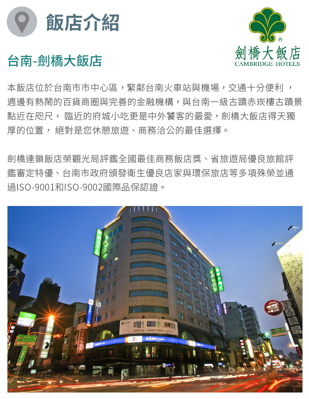 台南【劍橋大飯店】豪華雙人房/假日不加價(MO)