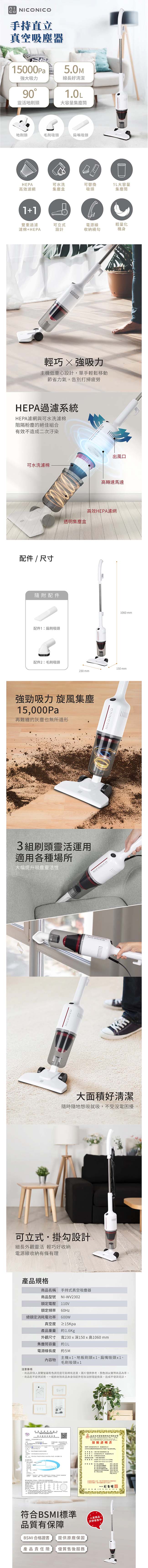 NICONICO 手持直立兩用真空吸塵器(附配件) NI-WV2302