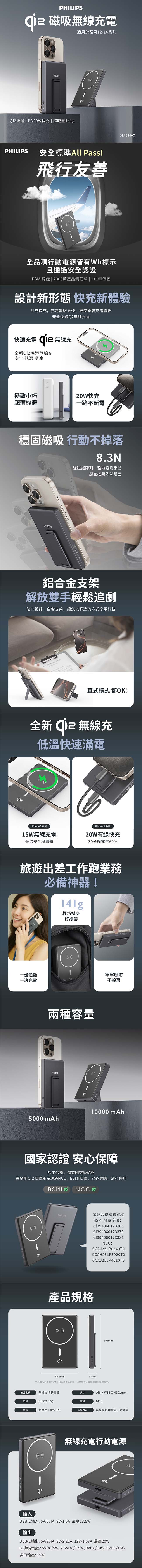 PHILIPS飛利浦 QI2.0 5000mAh磁吸無線行動電源 DLP2560Q
