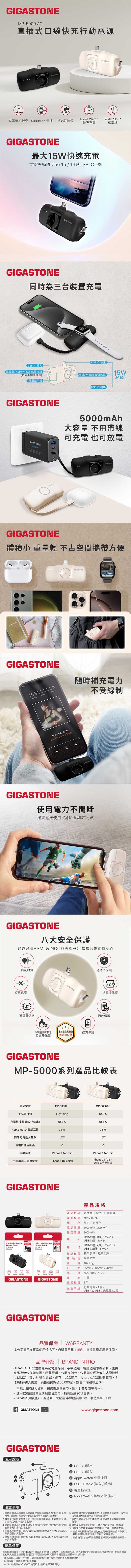 GIGASTONE USB-C直插式口袋磁吸行動電源 5000mAh MP-5000AC【奶茶色】