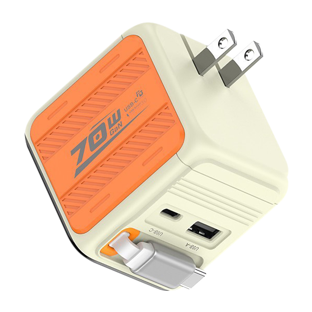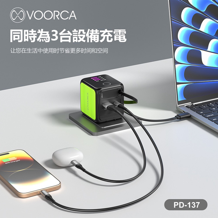 VOORCA PD-137 70W自帶伸縮快充神器(彩屏顯示 自帶伸縮線 Type-C充電頭)-白