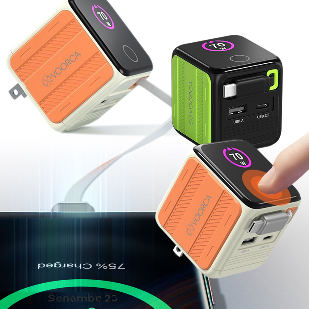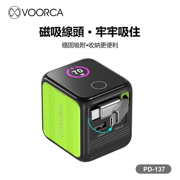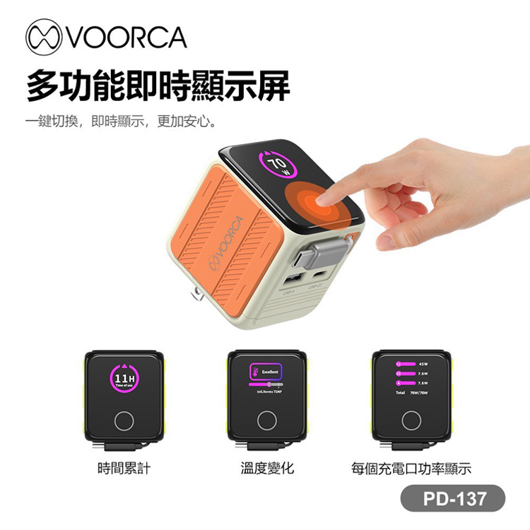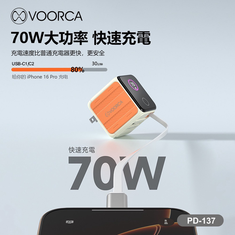 VOORCAPD-137 70W自帶伸縮快充神器(彩屏顯示 自帶伸縮線 Type-C充電頭)-白