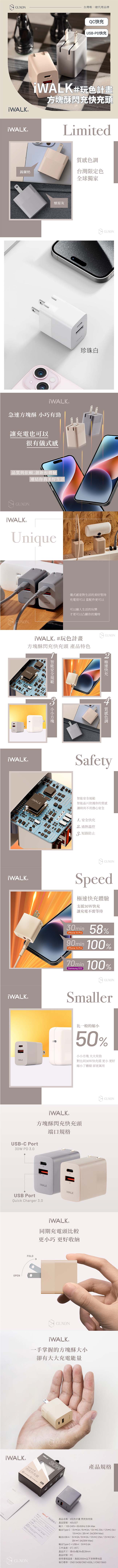 【iWALK】方塊酥30W閃充PD+QC摺疊快充頭 ADL027【燎原灰】