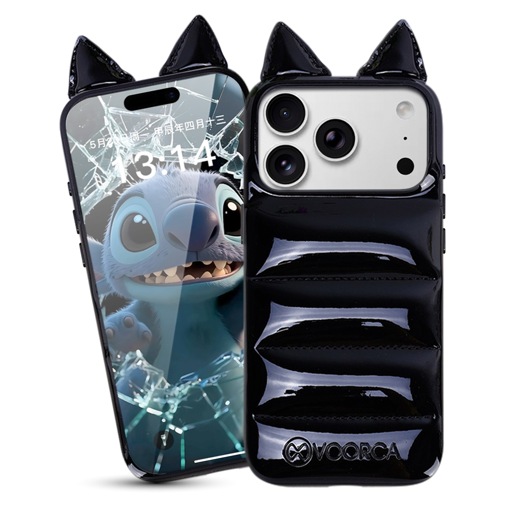 VOORCA VO-F1 iPhone 17 Pro 6.3 手工製羽絨立體手機殼-耳朵版黑色