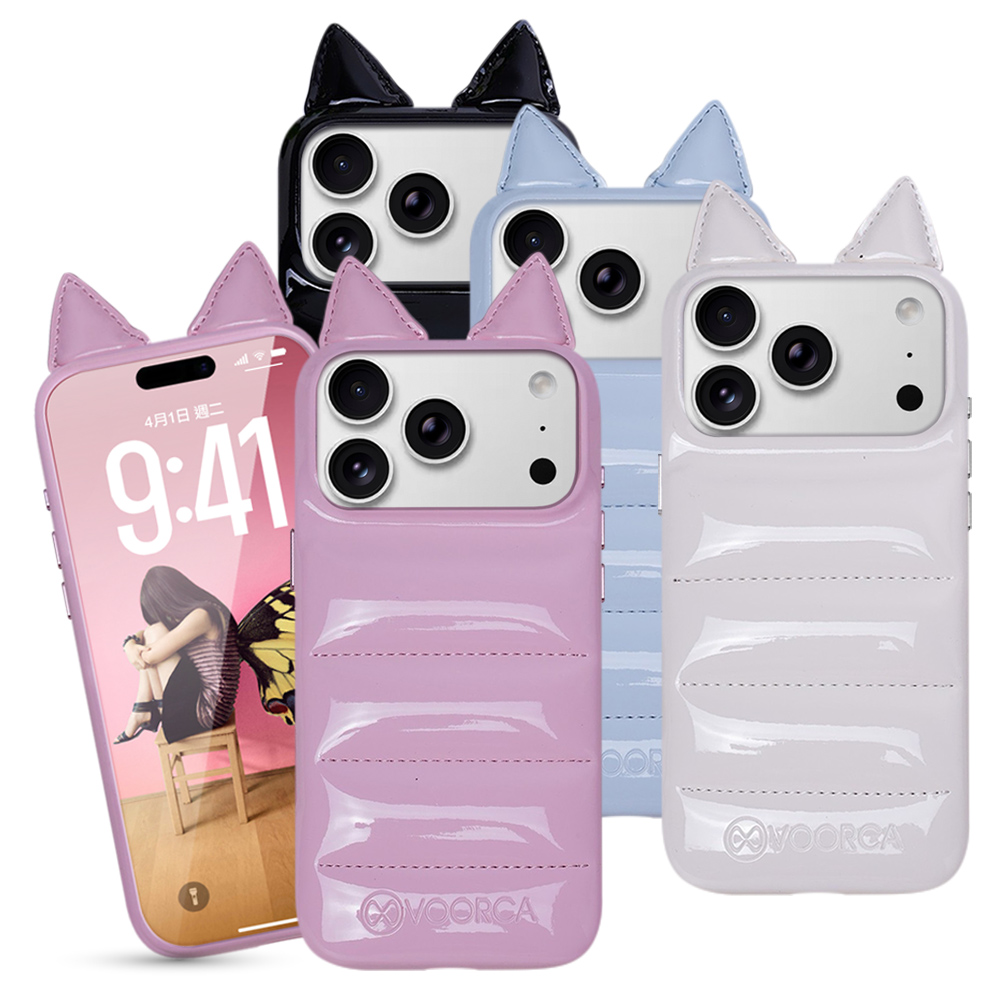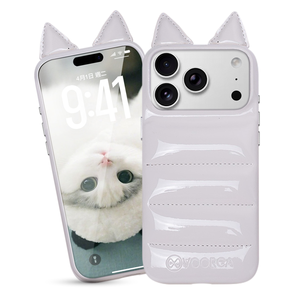 VOORCA VO-F1 iPhone 17 Pro 6.3 手工製羽絨立體手機殼-耳朵版白色