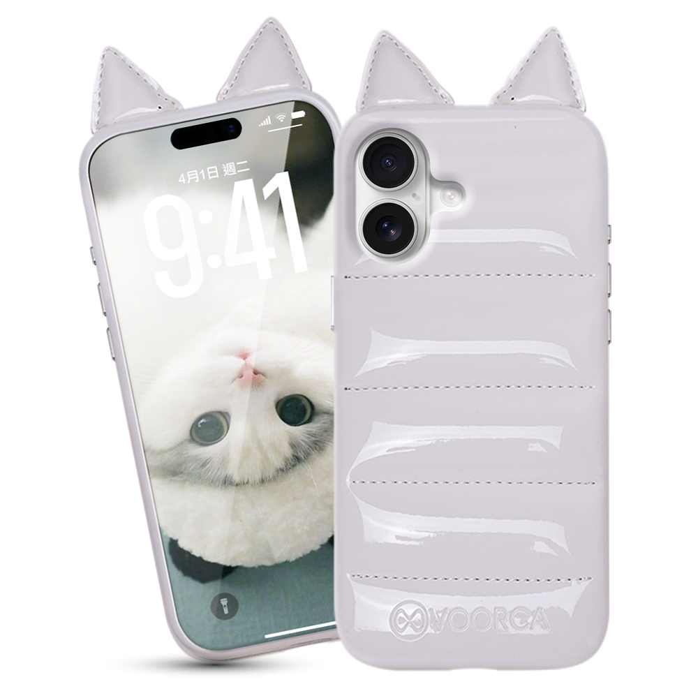 VOORCA VO-F1 iPhone 16 6.1 手工製羽絨立體手機殼-耳朵版白色