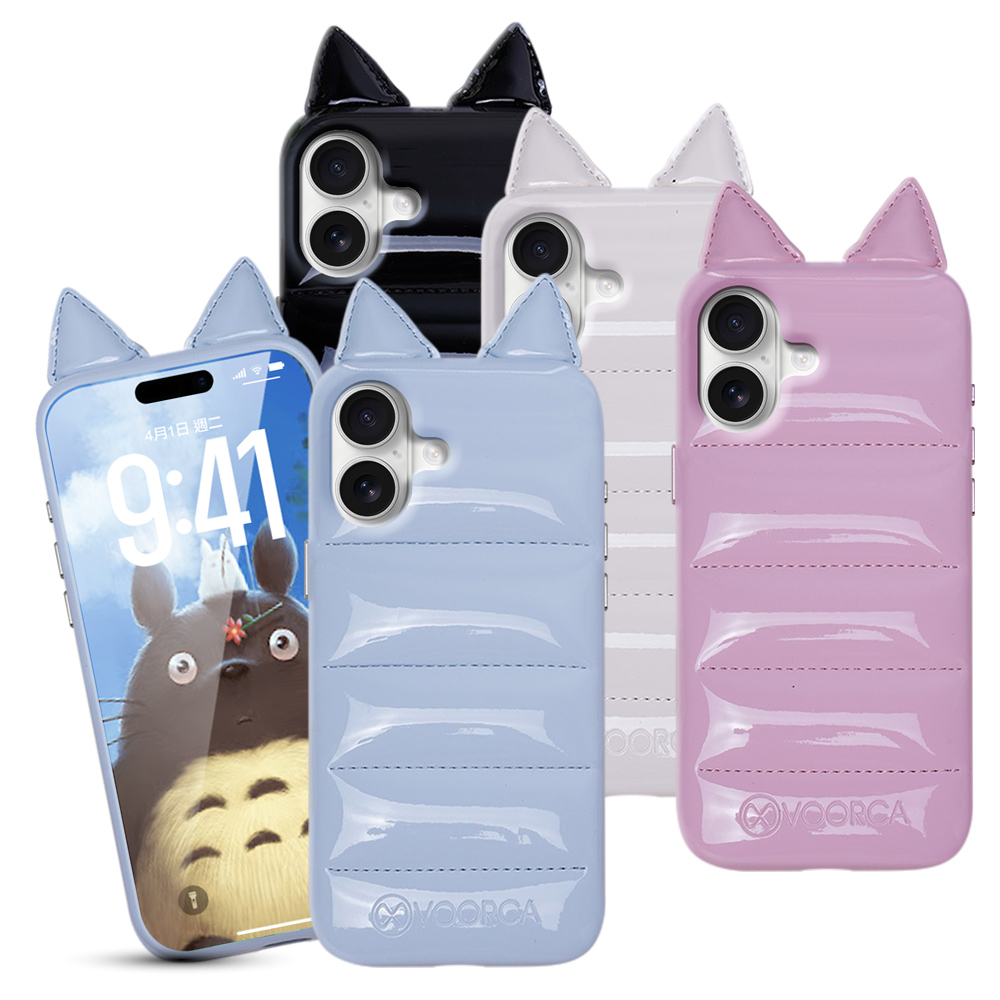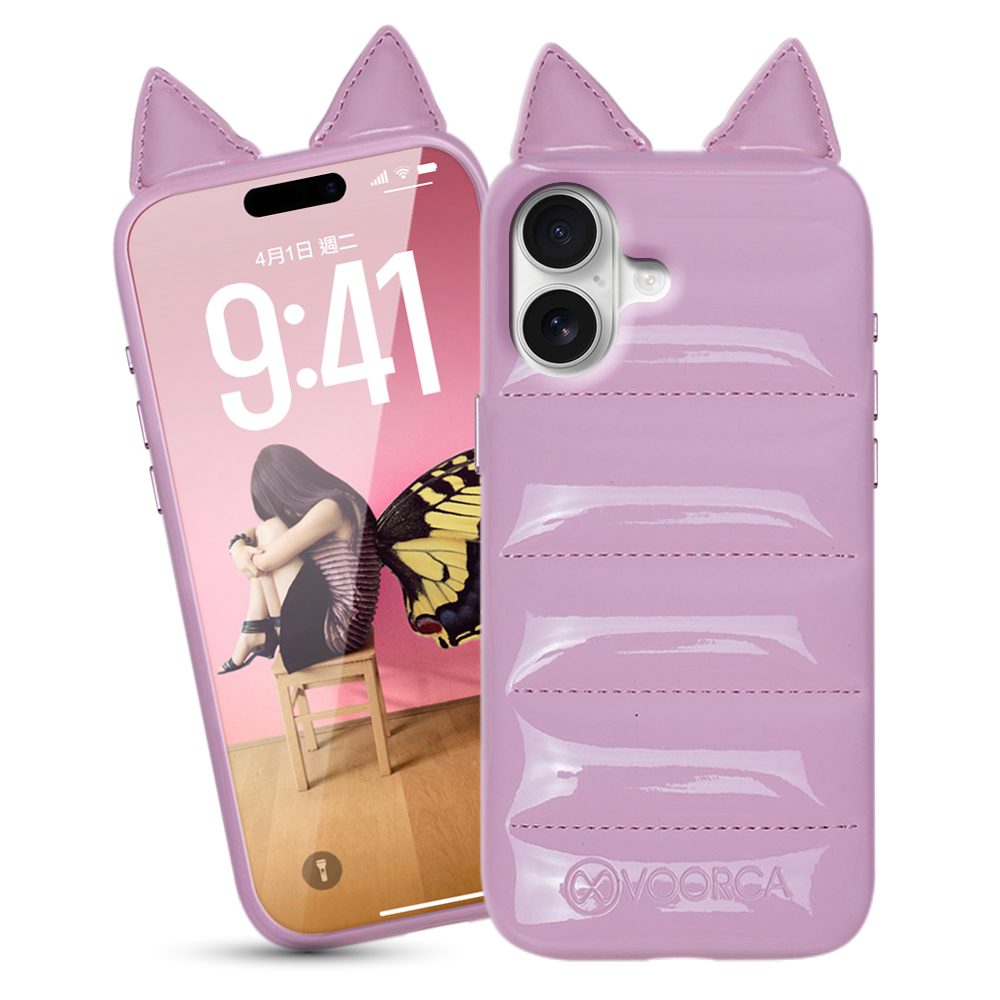 VOORCA VO-F1 iPhone 16 6.1 手工製羽絨立體手機殼-耳朵版粉色
