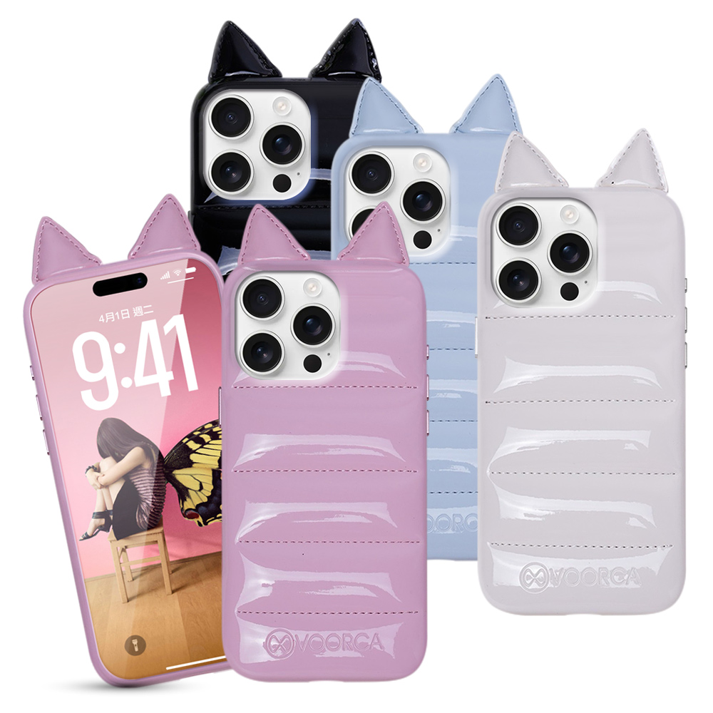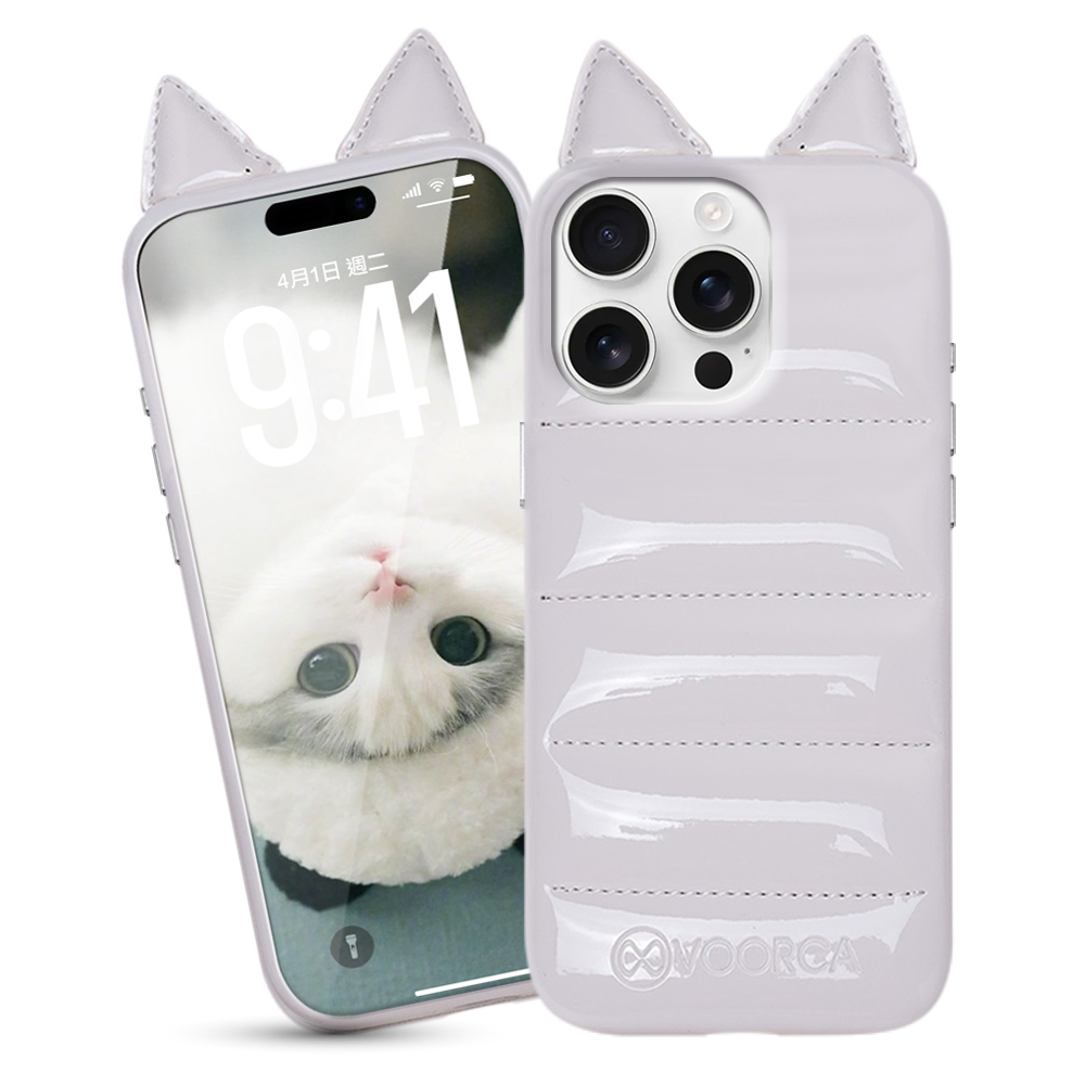 VOORCA VO-F1 iPhone 16 Pro 6.3 手工製羽絨立體手機殼-耳朵版白色