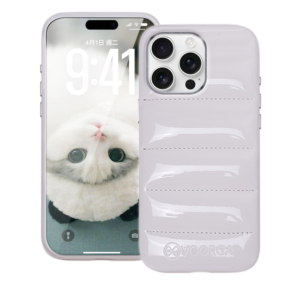 VOORCA VO-F2 iPhone 15 Pro Max 6.7手工製羽絨立體手機殼-無耳版白色