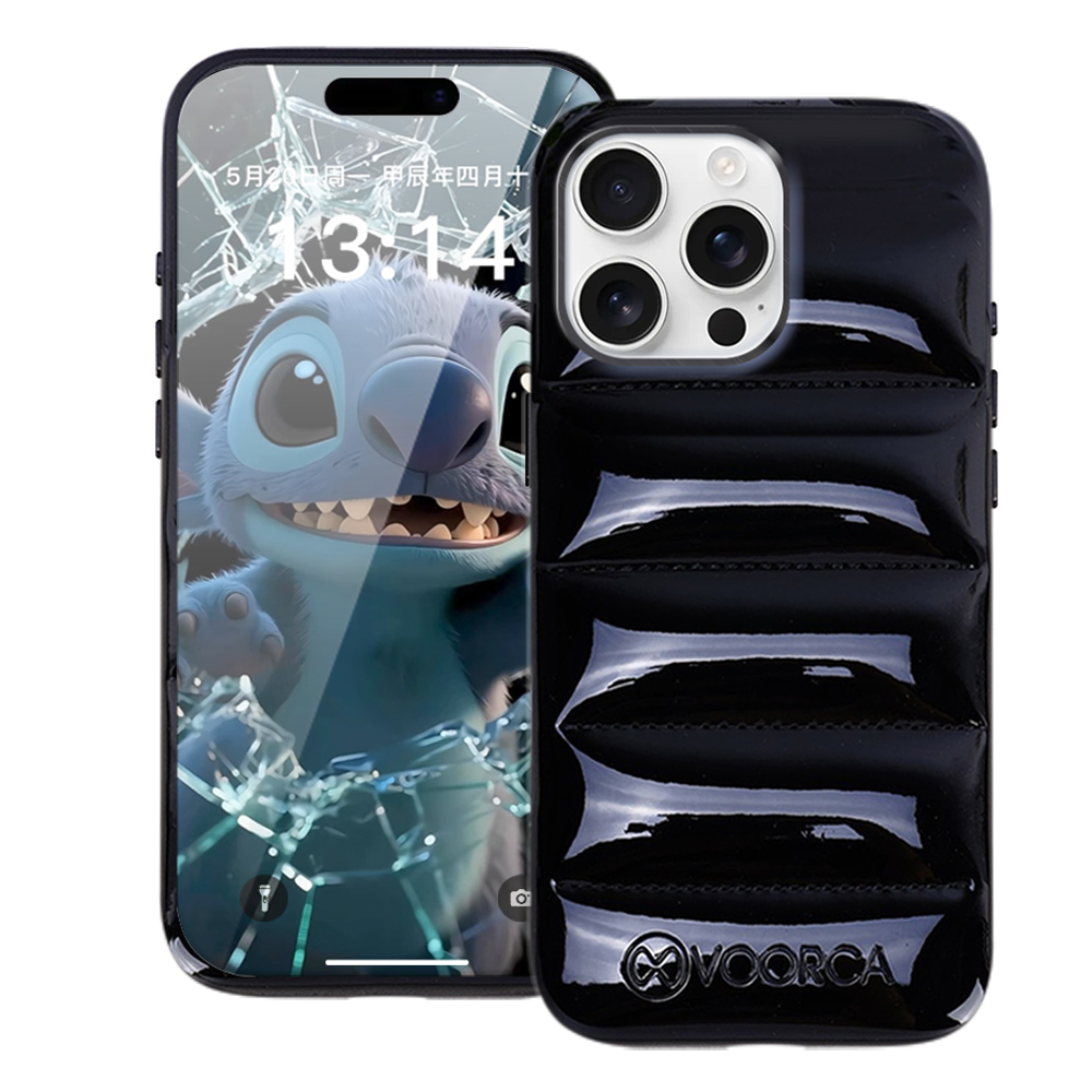 VOORCA VO-F2 iPhone 15 Pro Max 6.7手工製羽絨立體手機殼-無耳版黑色