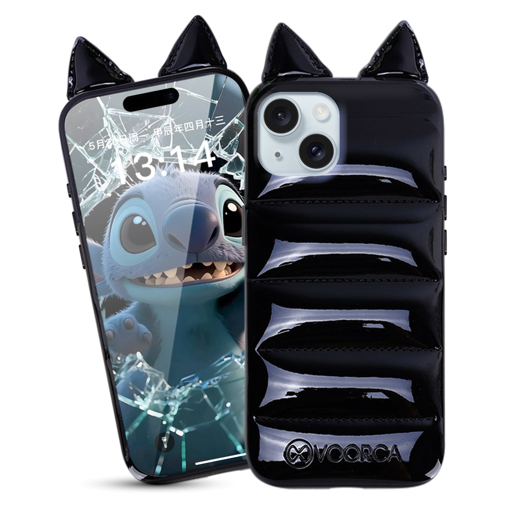 VOORCA VO-F1 iPhone 15 6.1手工製羽絨立體手機殼-耳朵版黑色
