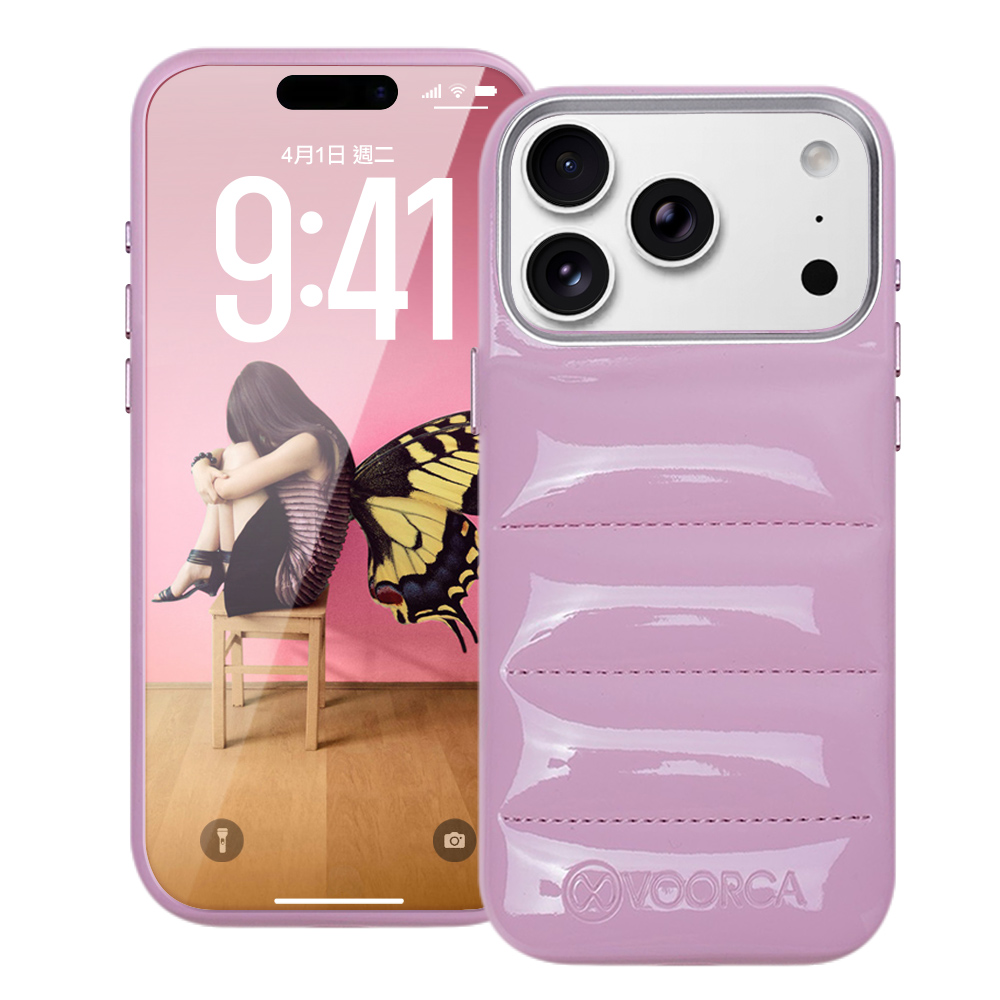 VOORCA VO-F2 iPhone 17 Pro 6.3 手工製羽絨立體手機殼-無耳版粉色