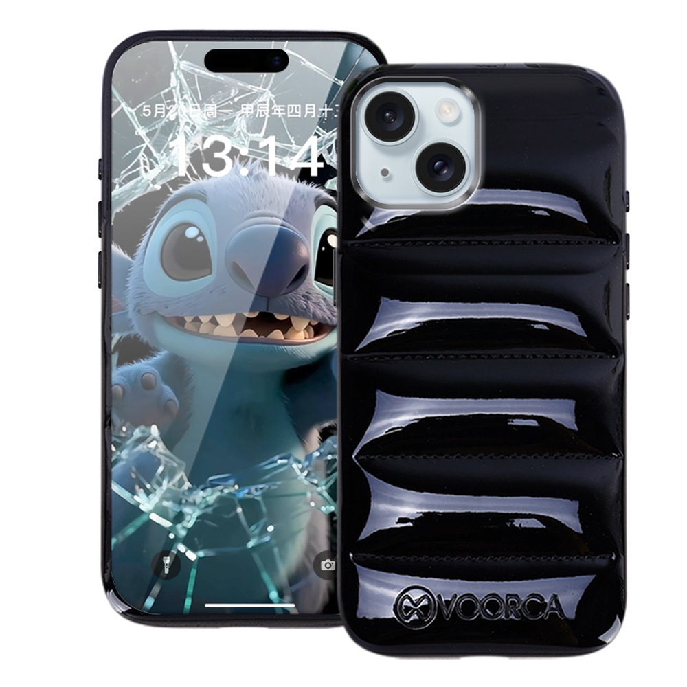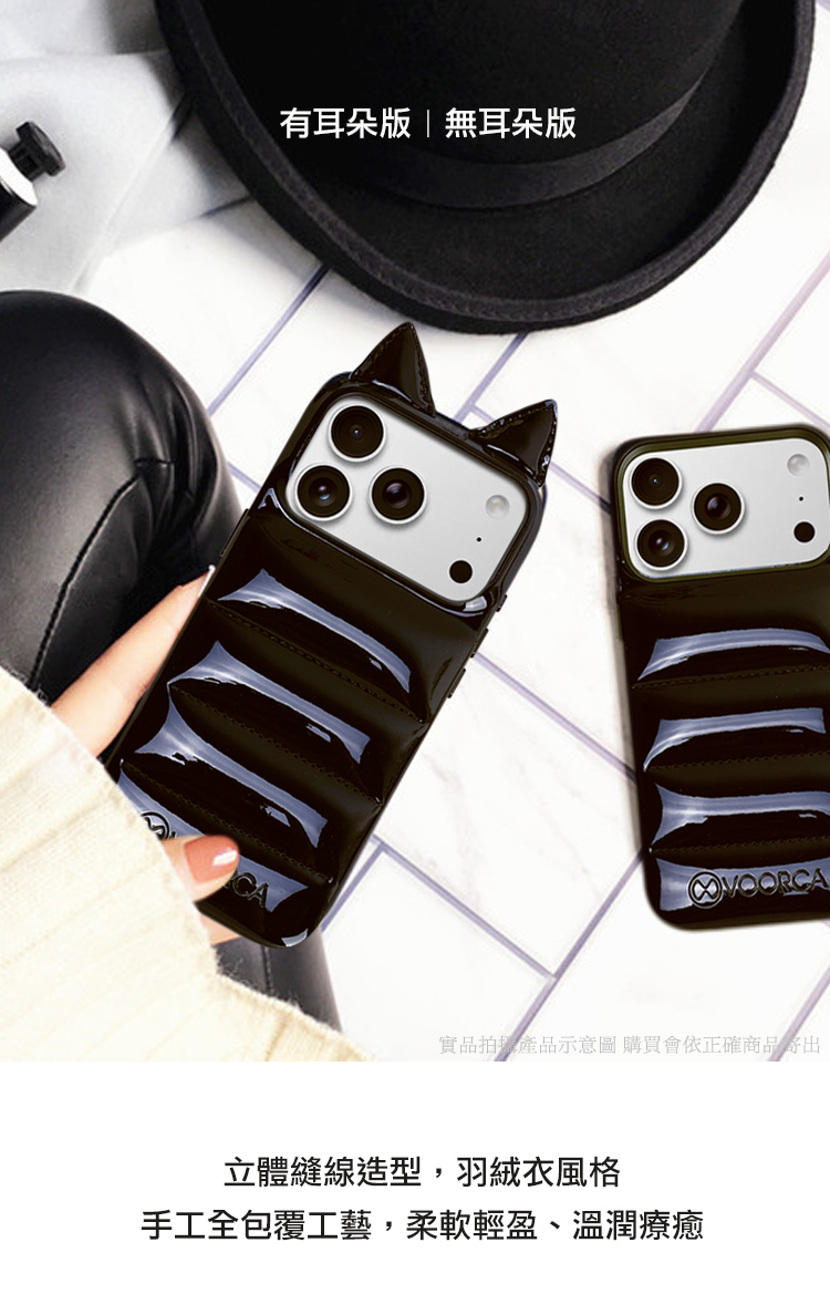 VOORCA VO-F2 iPhone 15 6.1 手工製羽絨立體手機殼-無耳版黑色