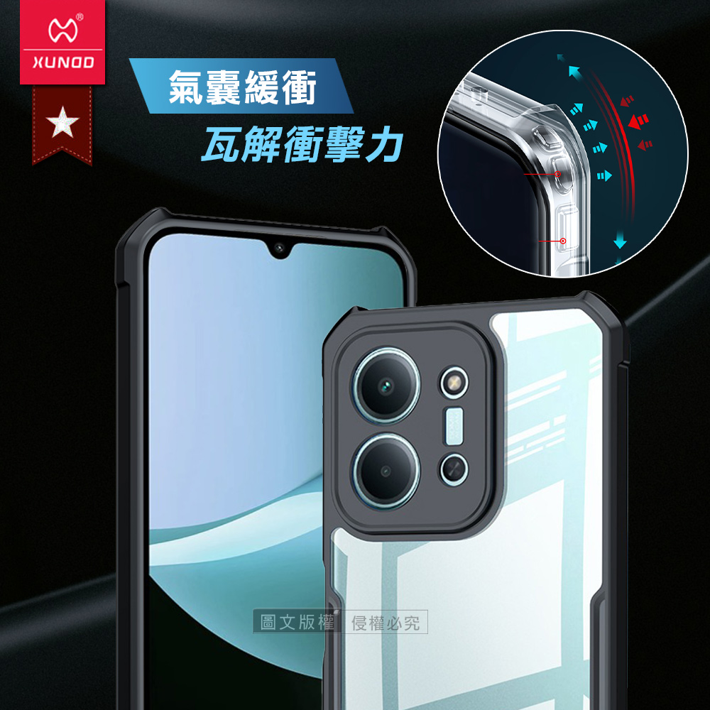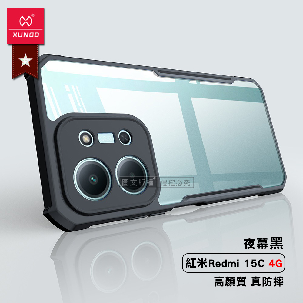 XUNDD訊迪 軍事防摔 紅米Redmi 15C 4G 鏡頭全包覆 清透保護殼 手機殼(夜幕黑)
