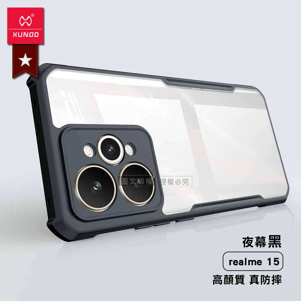 XUNDD訊迪 軍事防摔 realme 15 鏡頭全包覆 清透保護殼 手機殼(夜幕黑)