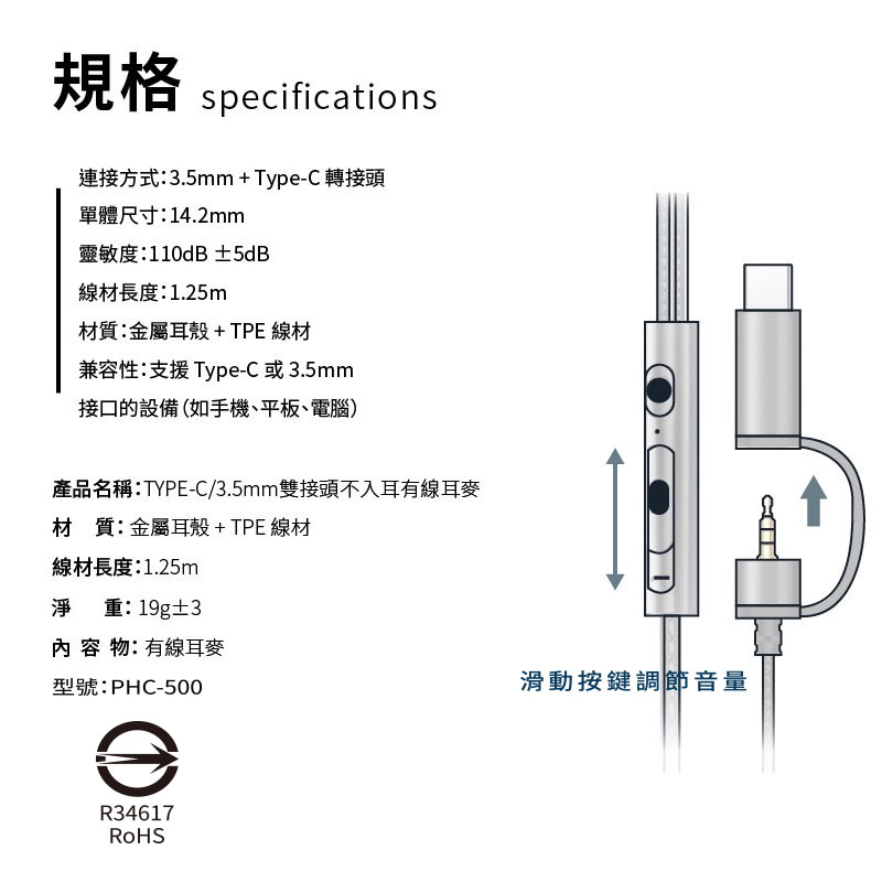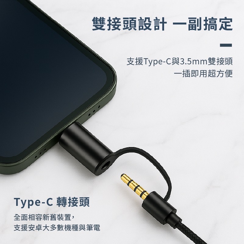 ☆雙接頭設計、支援Type-C與3.5mm雙接頭☆
