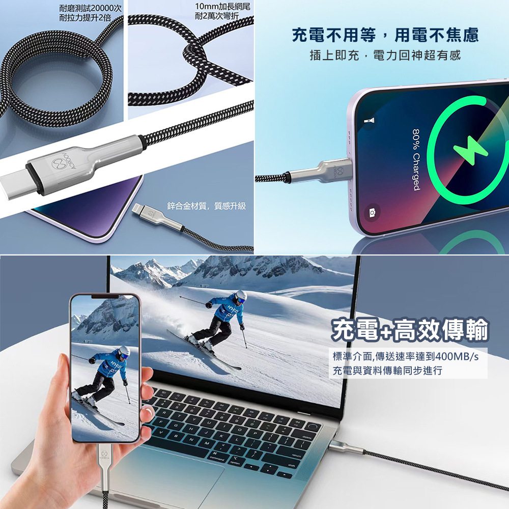 VOORCA 27W鋅合金快充 Type-C to Lightning 快充線+雙輸出迷你充電器