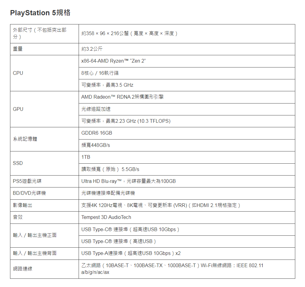 .PlayStation 5 薄型化 台灣專用機(型號:CFI-2118A01,配備光碟機,內建 1TB 容量 SSD)