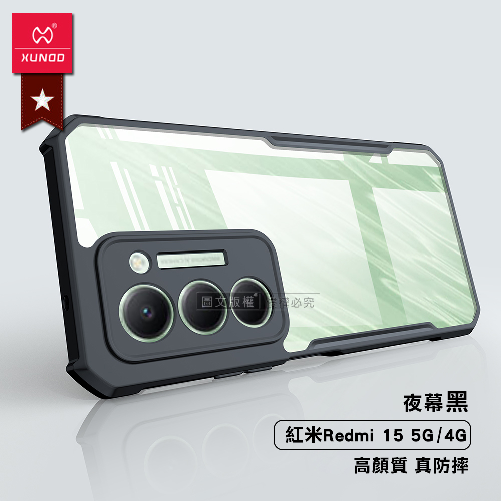 XUNDD訊迪 軍事防摔 紅米Redmi 15 5G/4G 共用 鏡頭全包覆 清透保護殼 手機殼(夜幕黑)