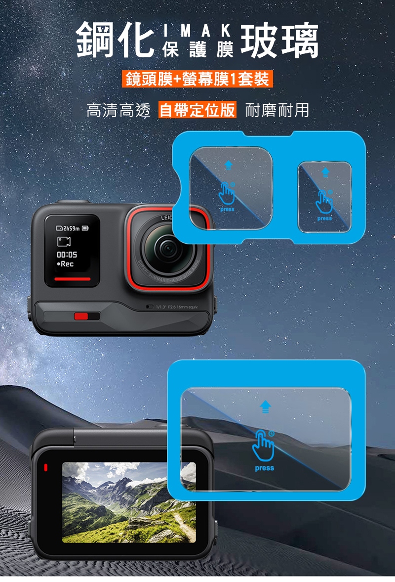 Imak 艾美克 Insta360 Ace Pro 鏡頭+螢幕玻璃貼(自帶定位版)