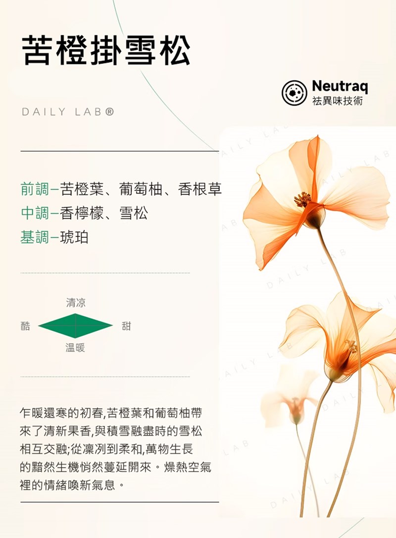 香氛香型:柑橘想泡茶,苦橙掛雪松,琥珀粉胡椒,菩提藏松林