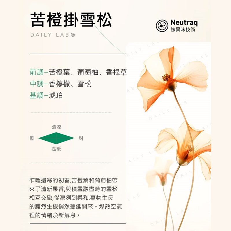 香氛香型:柑橘想泡茶,苦橙掛雪松,琥珀粉胡椒,菩提藏松林