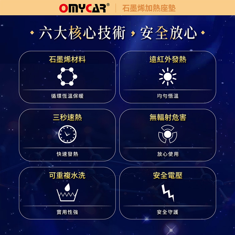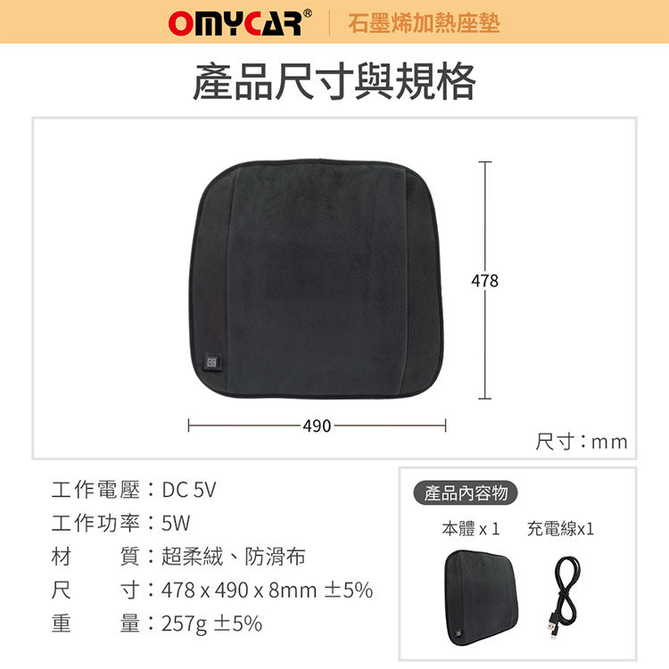 【OMyCar】石墨烯加熱座墊(一年保固) 發熱坐墊/保暖椅墊/三段調溫/居家辦公皆可