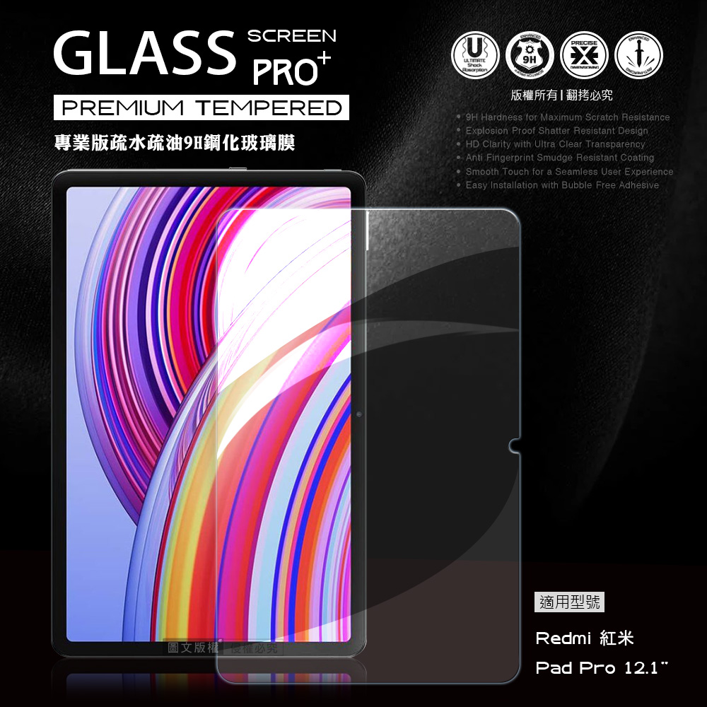 VXTRA 軍事防摔級 紅米Redmi Pad Pro 12.1吋 Y折晶透背蓋立架皮套(經典黑)+9H玻璃貼(合購價)