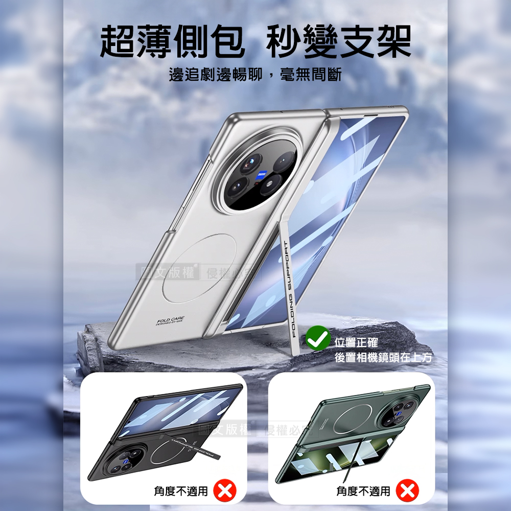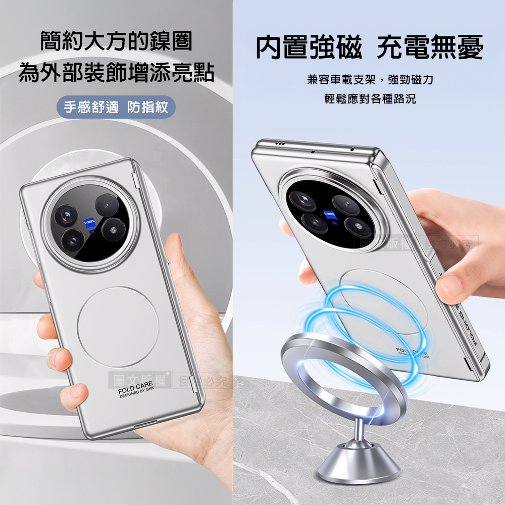vivo X Fold5 殼膜一體 鏡頭轉軸全包覆支架 磁吸保護殼 手機殼(氣質銀)