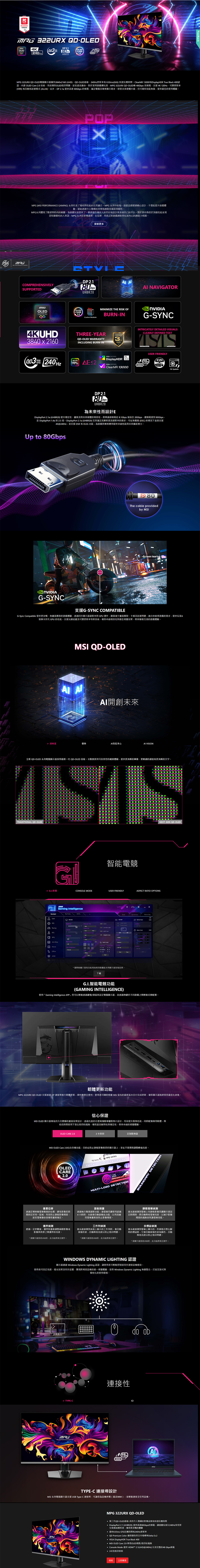 MSI MPG 322URX QD-OLED 32型 電競螢幕