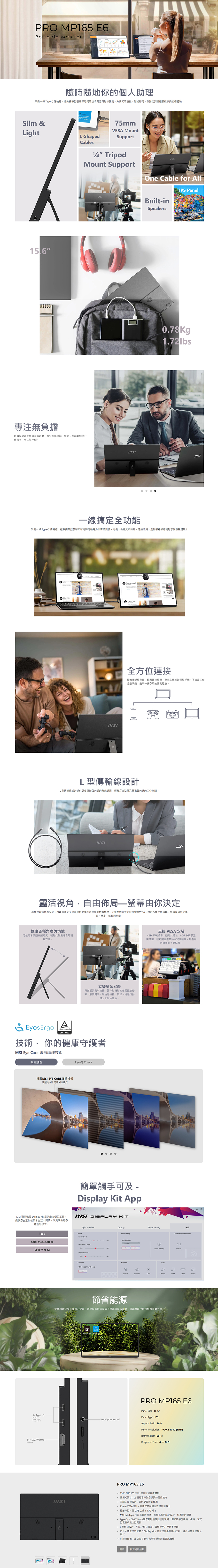 MSI PRO MP165 E6 16型 可攜式螢幕