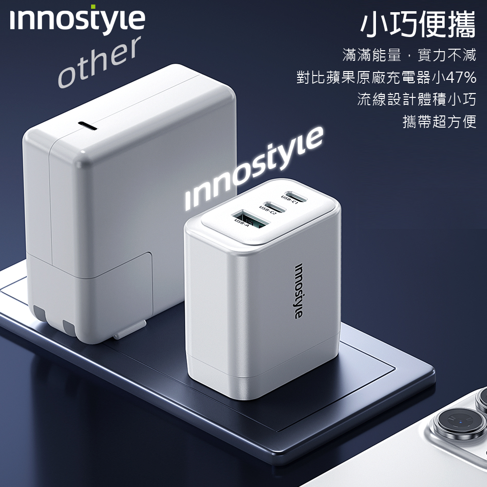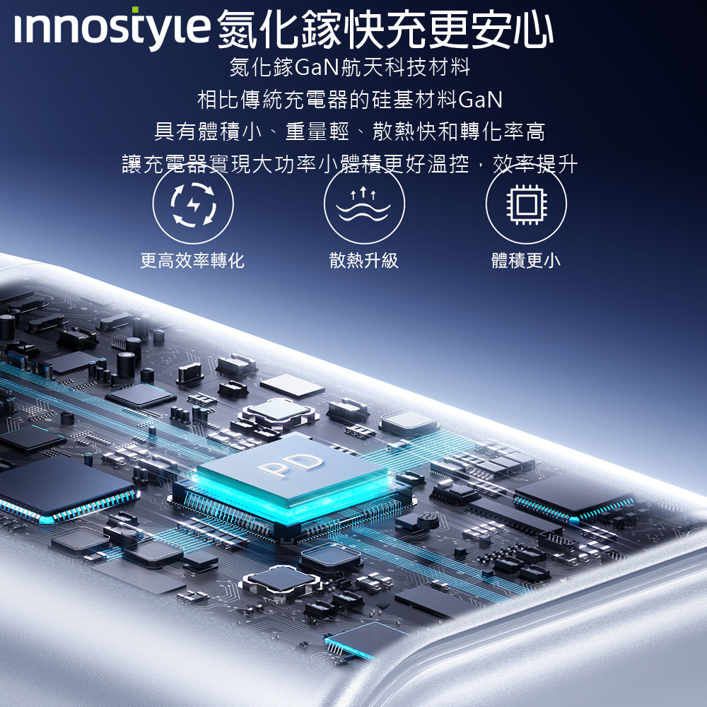 innostyle 三孔 65W Type-C+USB PD/GaN氮化鎵快充充電器充電頭 GoCharge 黑色