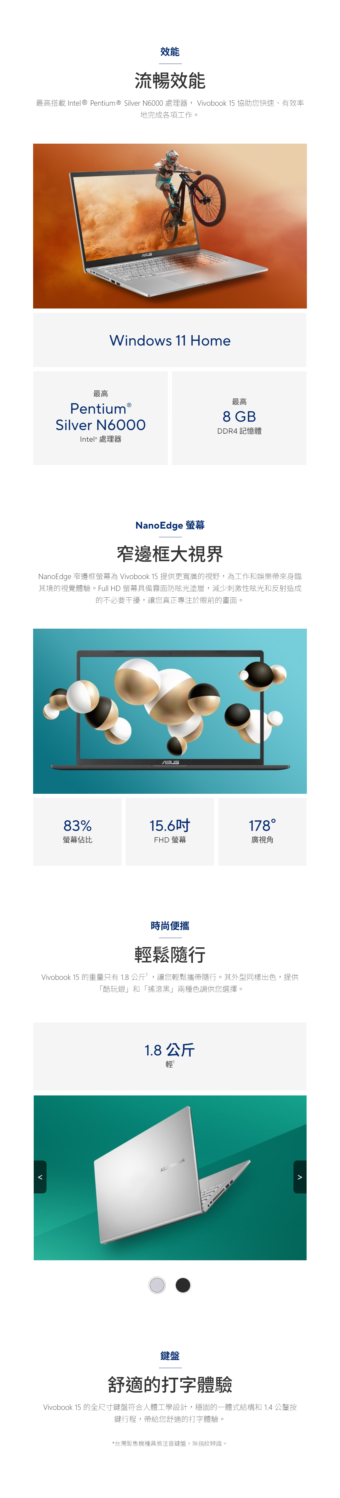 ★15.6吋窄邊框大螢幕,83%屏佔比