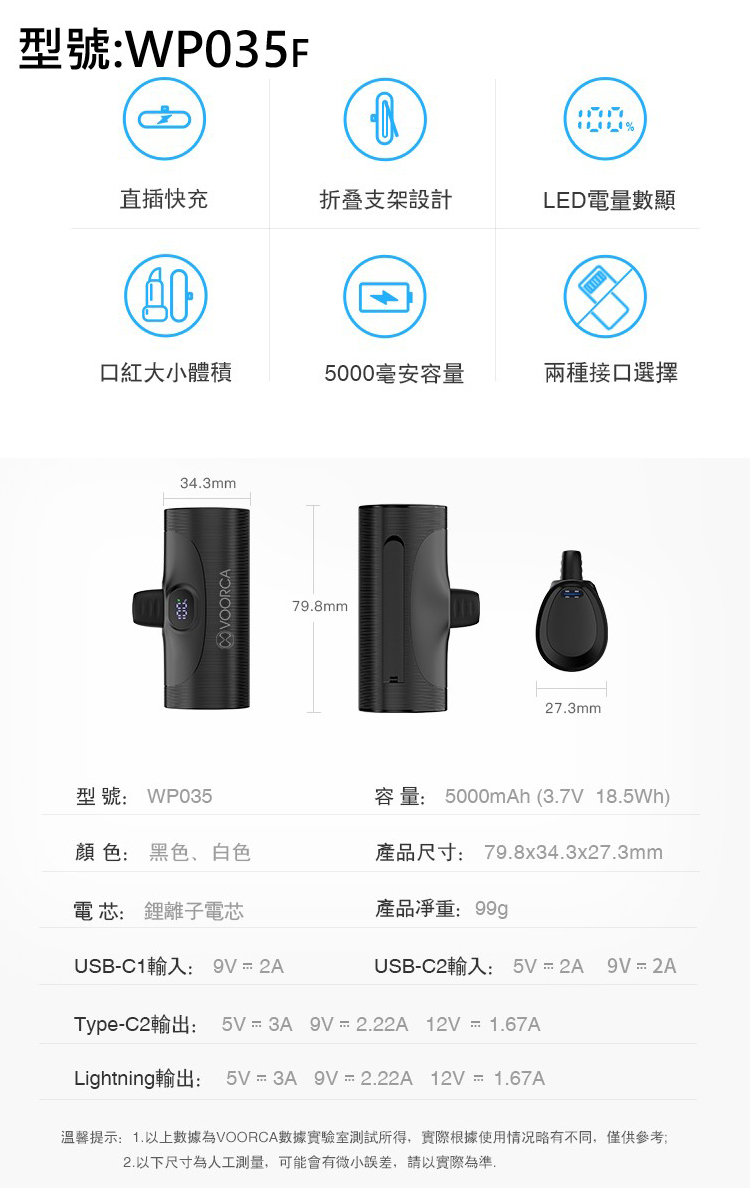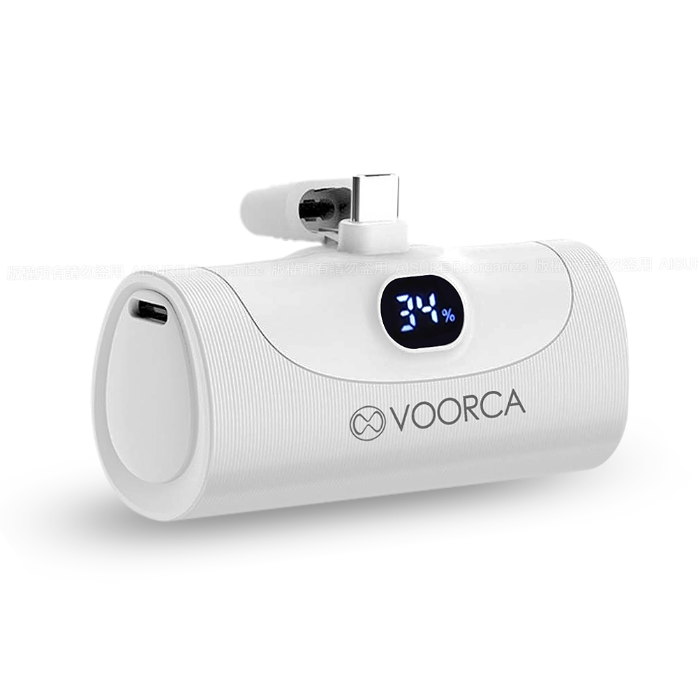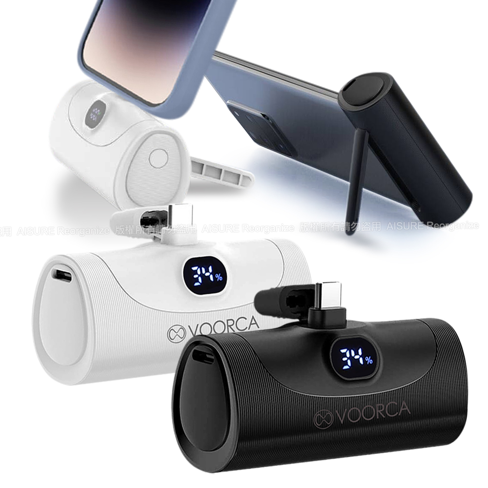 VOORCA WP035F 2合1 5000mAh 雙向20W快充 - 自帶USB-C尾插 金屬立架 數顯功能-白