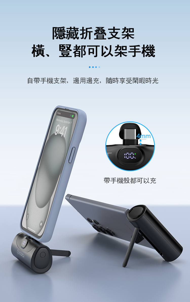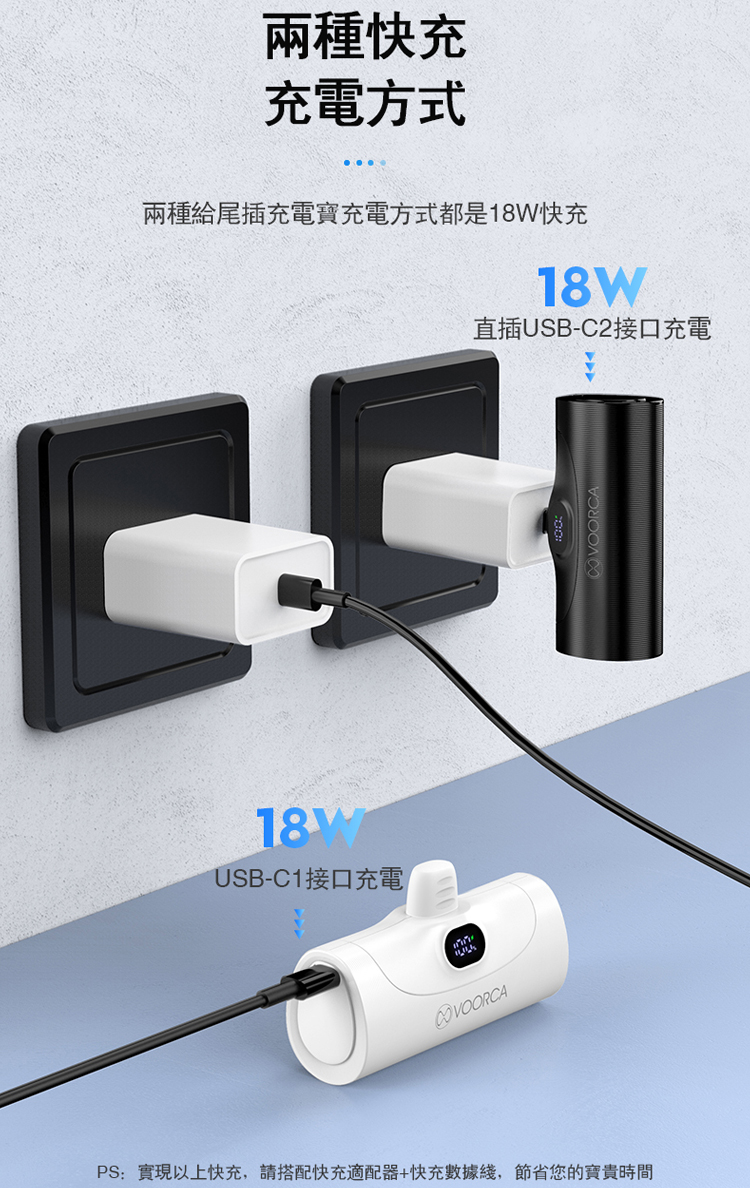 結合USB-C自帶伸縮尾插與雙向20W快充