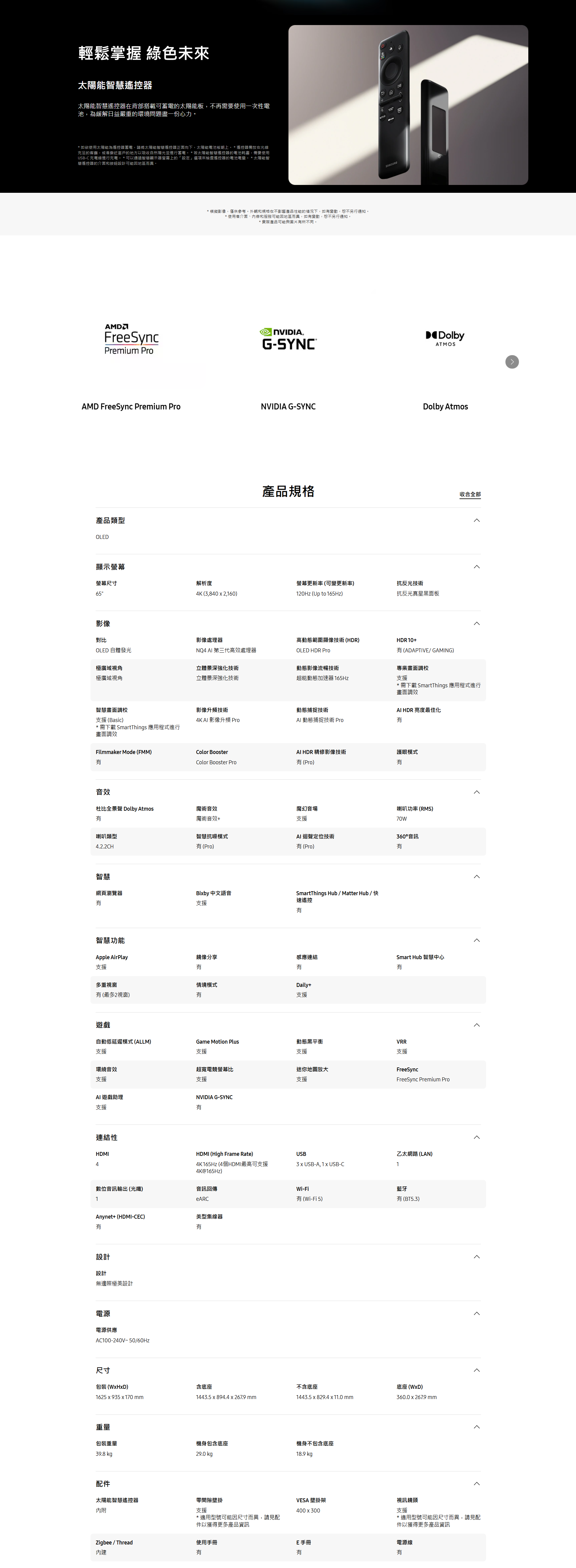 Samsung QA65S95FAXXZW 65型 OLED 4K AI智慧顯示器