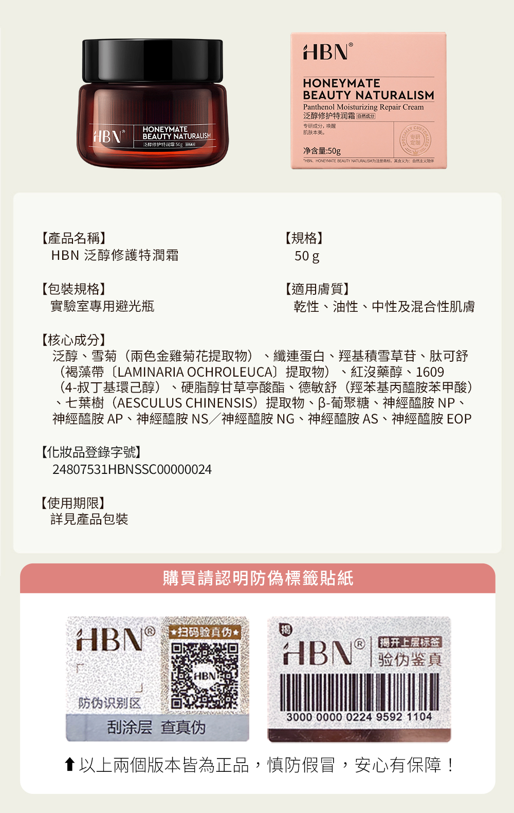 【HBN官方】泛醇修護特潤霜 5g(B5面霜3.0)
