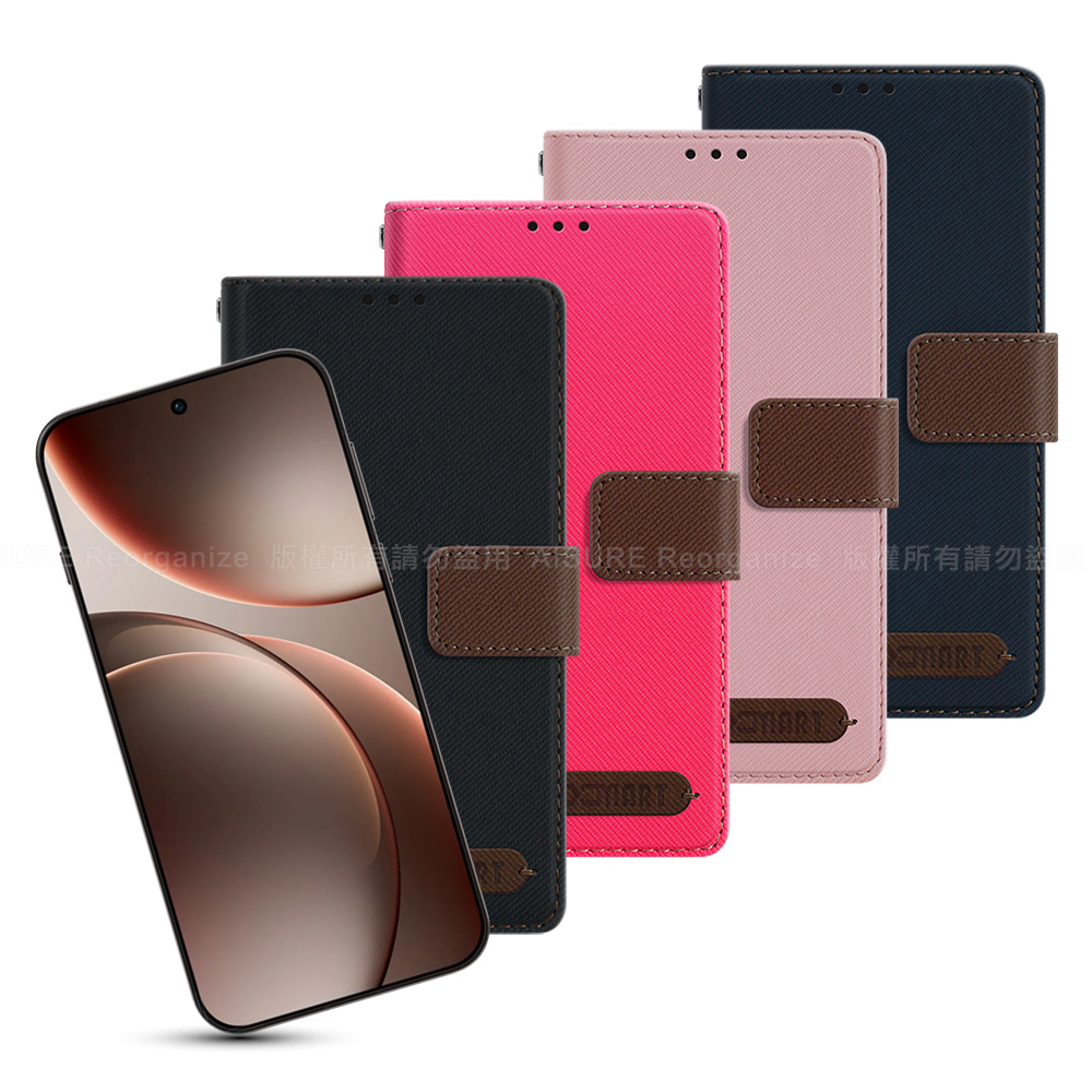 Xmart OPPO Find X9 Pro 度假浪漫風斜紋側掀支架皮套-灰