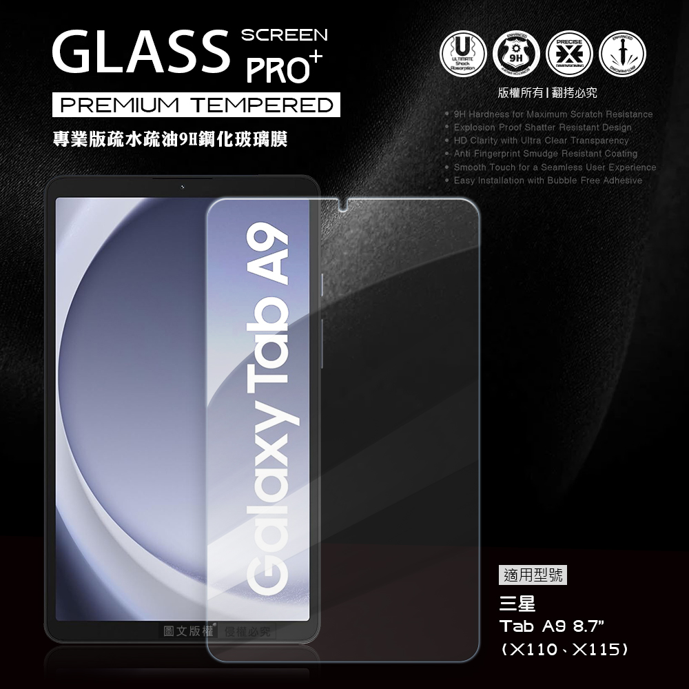 VXTRA 軍事防摔級 三星 Galaxy Tab A9 8.7吋 Y折晶透背蓋立架皮套(微醺藍)+9H玻璃貼(合購價)