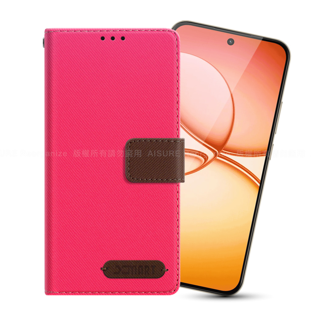 Xmart Realme 15T 度假浪漫風斜紋側掀支架皮套-桃