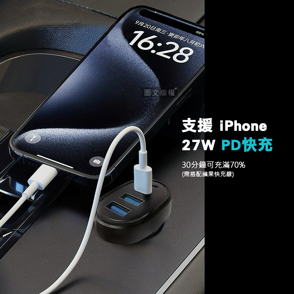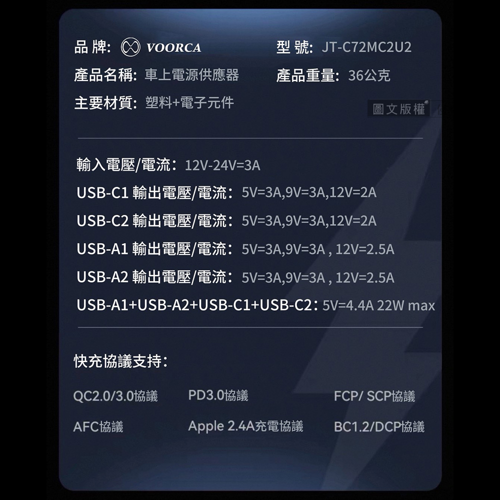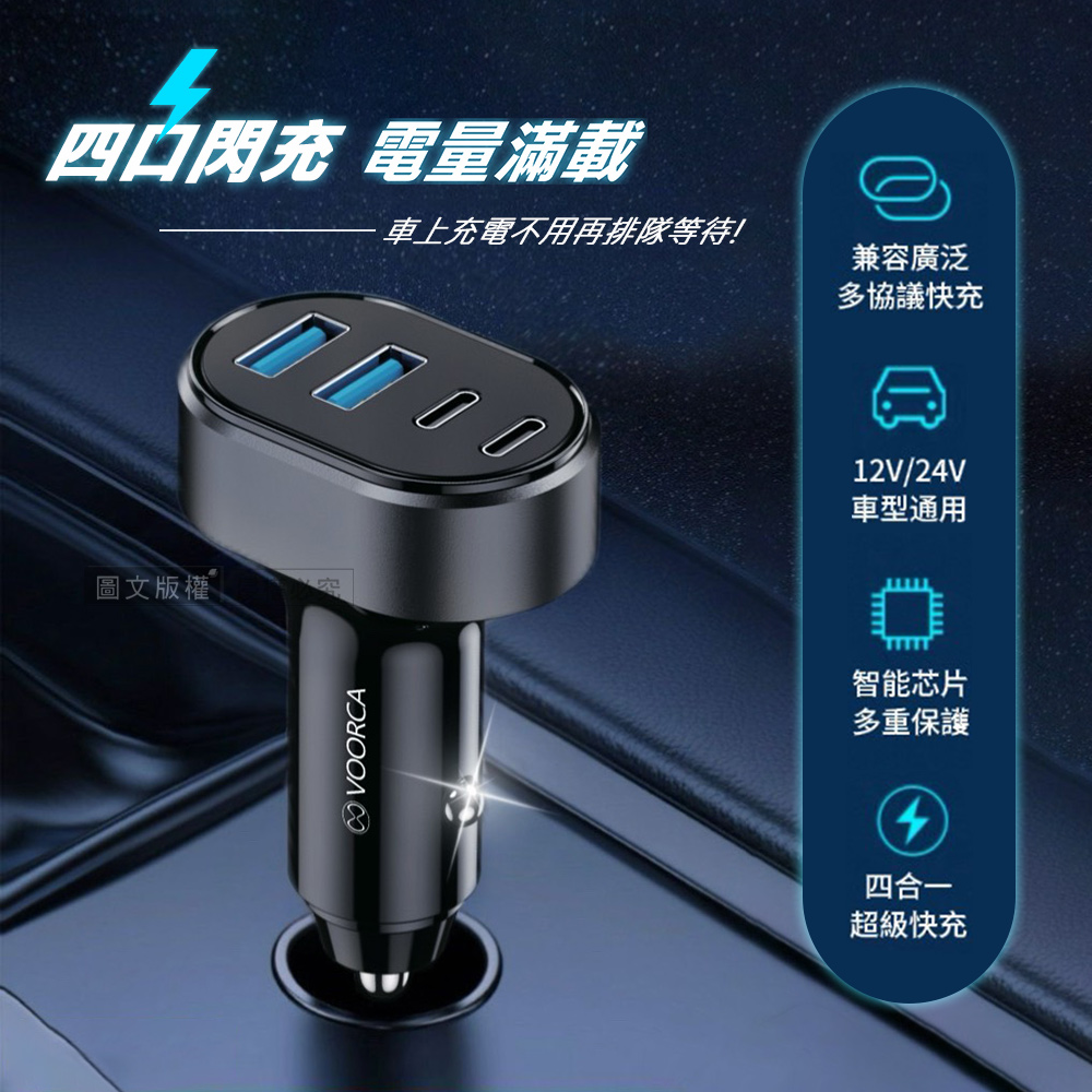 VOORCA 72W速充型車用充電器 Type-C/USB-A 4孔車充頭 PD+QC多協議快充(白色)