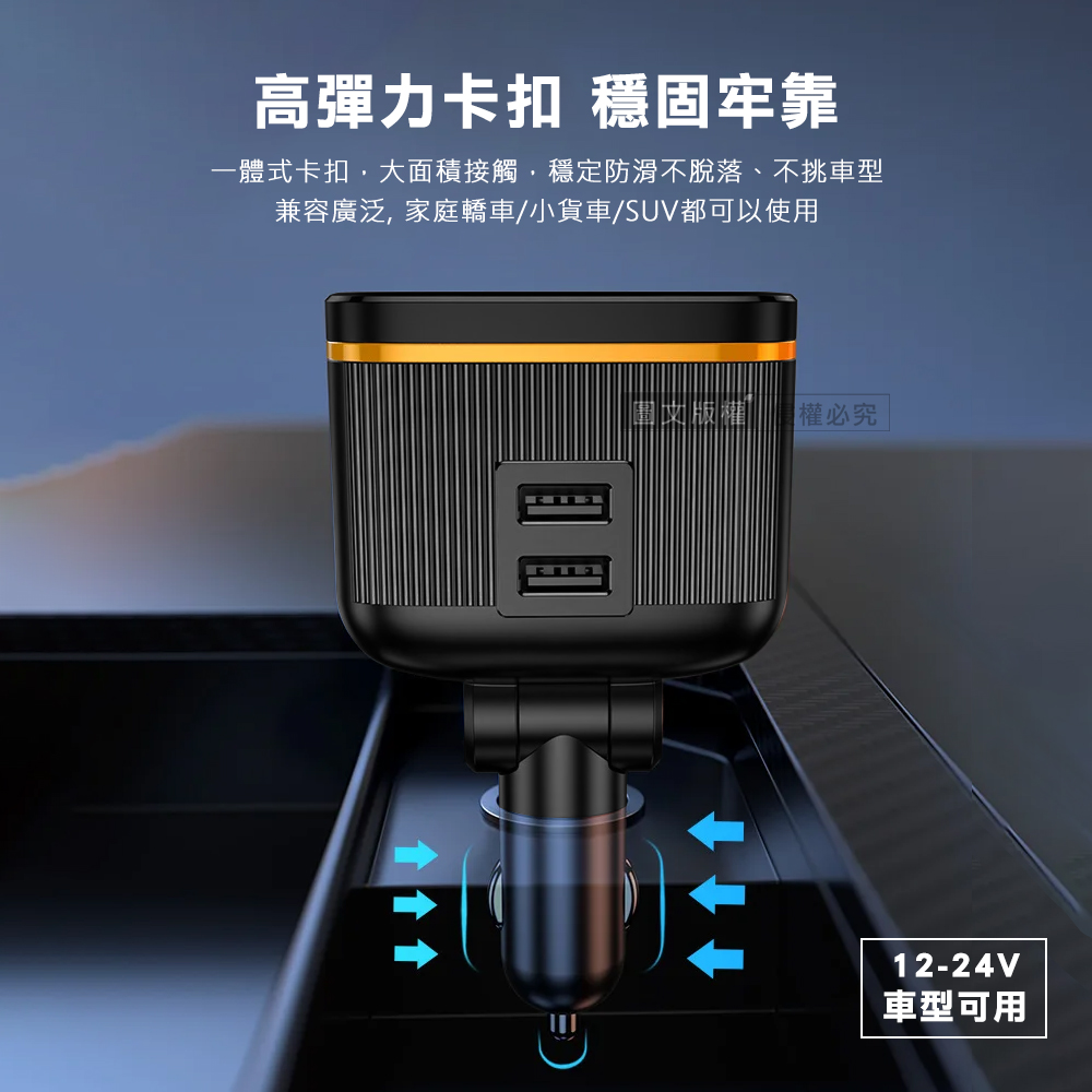 Songwin 145W雙孔車用快充擴充器 PD45W+QC3.0 數顯電壓 角度可彎折車充