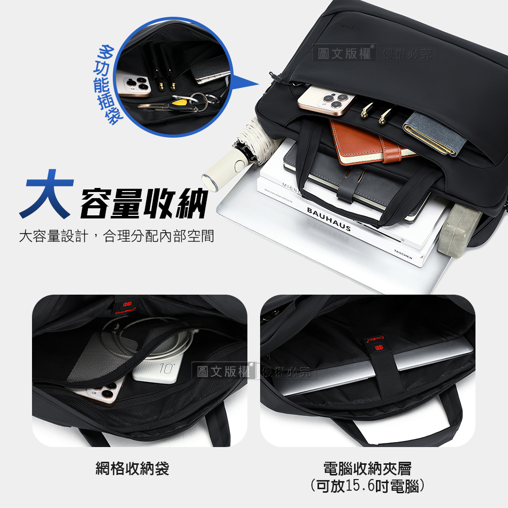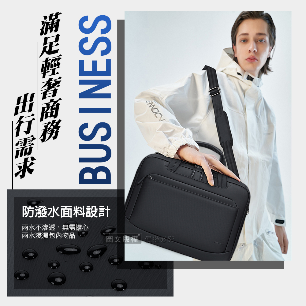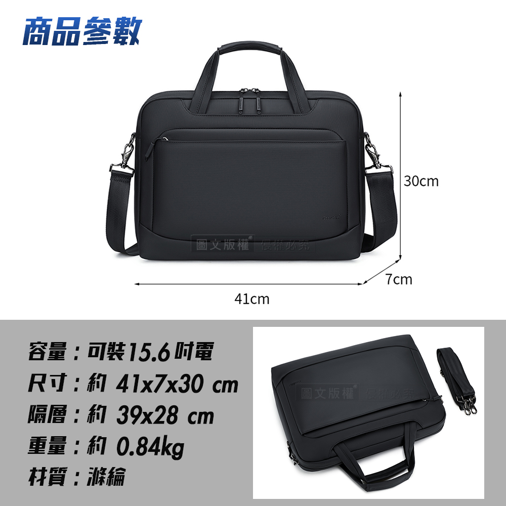 都會風尚 15.6吋 商務休閒電腦包 滑順手感 防潑水多隔層 手提斜背公事包(墨雅黑)