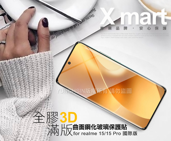 Xmart realme 15 / 15Pro 國際版 全膠3D滿版曲面玻璃貼-黑