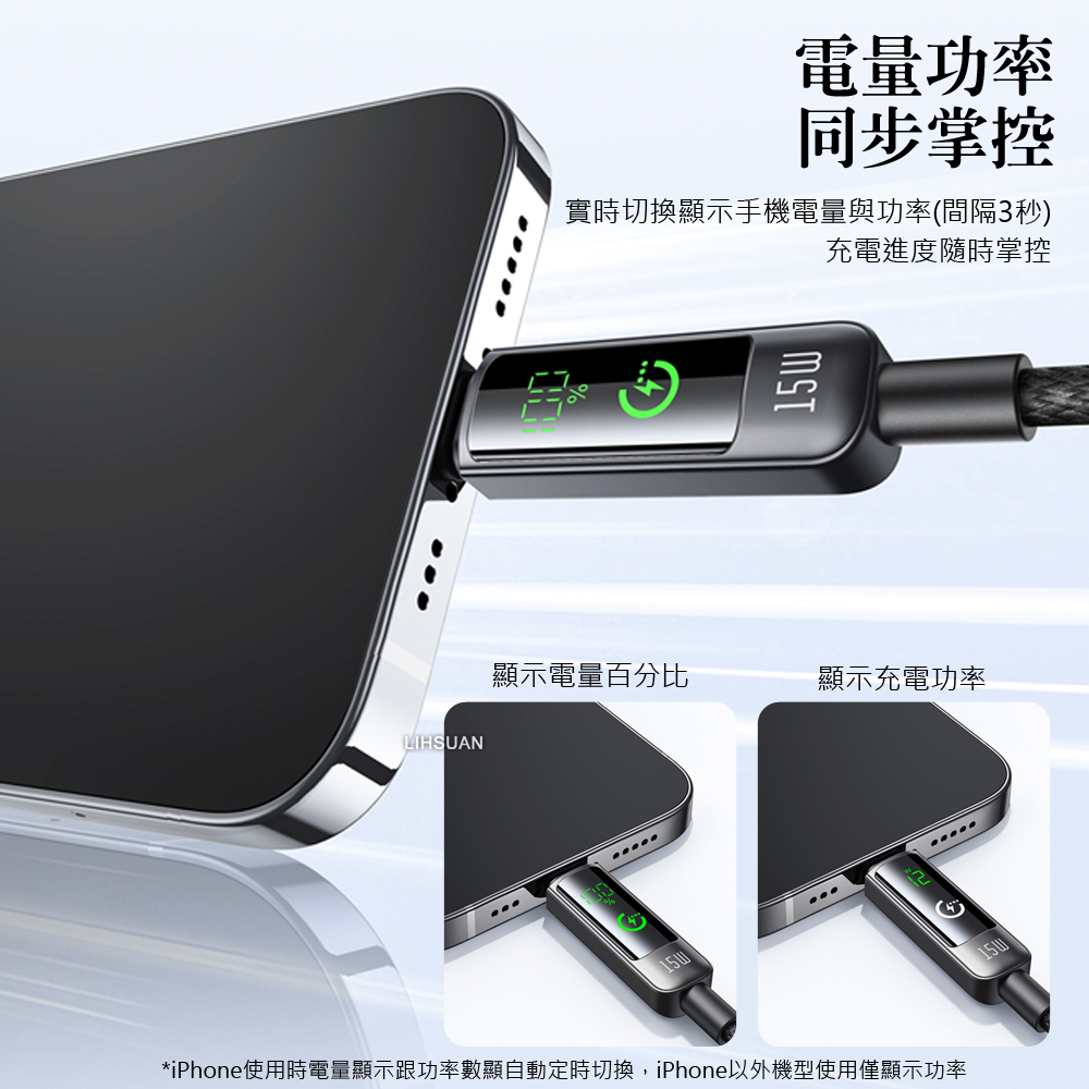 AIDOGA 艾迪伽 Lightning/iPhone充電線傳輸線快充線 電量顯示/智能斷電/補電/功率數顯 1.2M